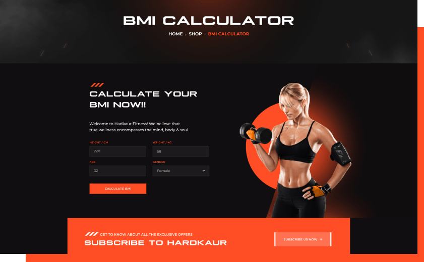 For health enthusiasts BMI calculator is a very important feature in any gym or fitness website so we are not also any exeption. We provide multiple designs of BMI calculator in hadkaur.